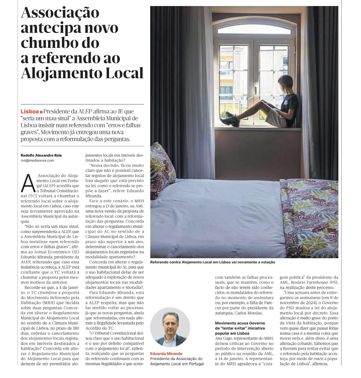 27 NOVEMBRO 2025 - "Eduardo Miranda, presidente da ALEP em entrevista ao canal NOW comenta "O número de registos, em breve, vai reduzir em muito. Pela primeira vez na história vai haver uma redução significativa. Espera-se que um terço dos registos, em breve - é um processo que está sendo feito não só em Lisboa, mas no país inteiro -, sejam cancelados".